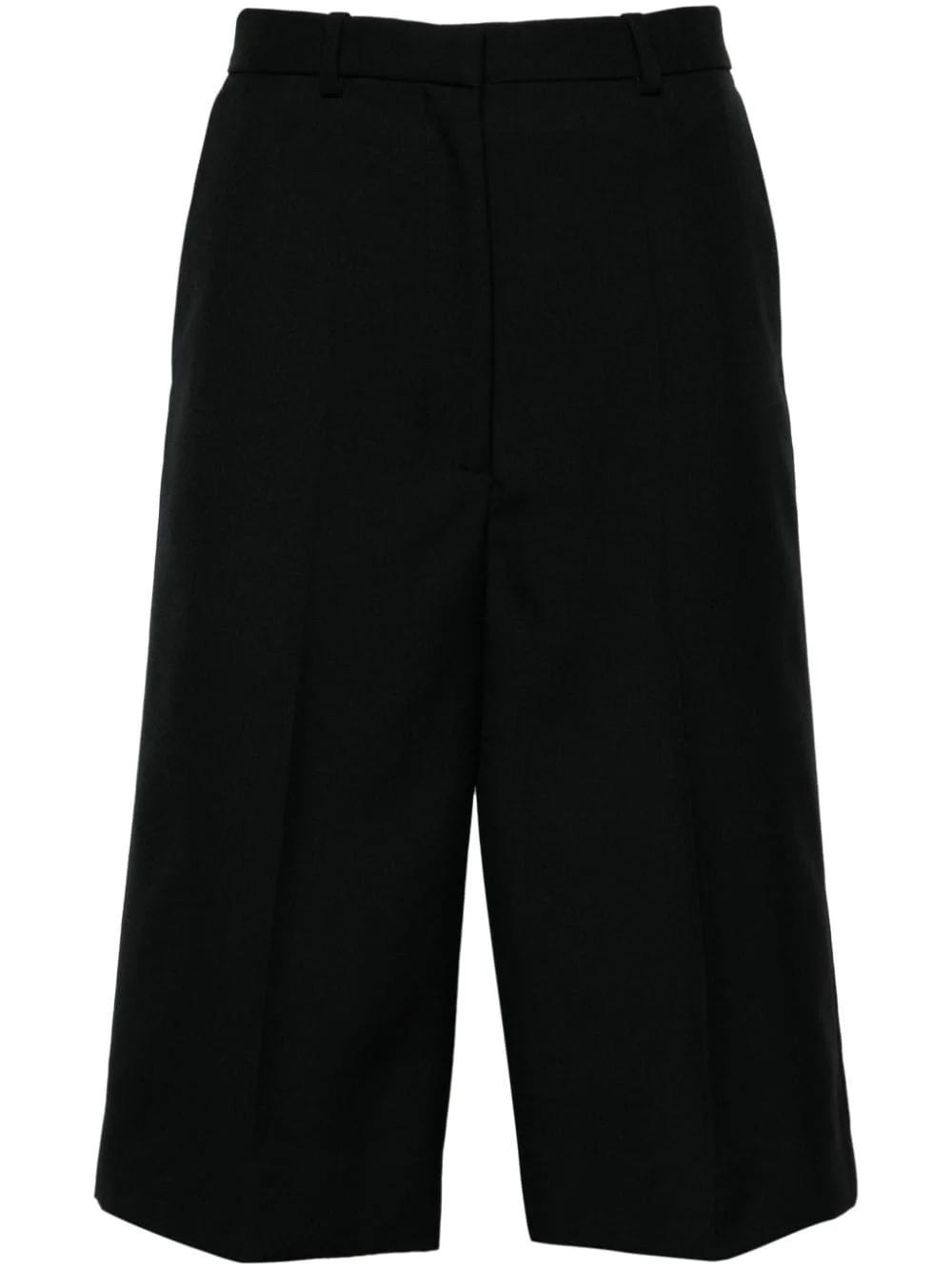 low-rise tailored boy shorts Highlights - Black - Gabardine weave - Pressed crease - Low-rise - Belt loops - Concealed front fastening - Two diagonal pockets to the sides - Two rear welt pockets - Wide leg - Knee-length Imported Composition Nylon 65%, Cotton 30%, Other fibres 5% SIZE & FIT Model measurements Height 5 ft 9 in(1.76 m) Bust/Chest 31.1 in(79 cm) Hips 36.61 in(93 cm) Waist 24.8 in(63 cm) FittingInformation Designed for a loose fit, offering comfort and movement when worn Made from a midweight non-stretch fabric This piece fits true to size – take your usual size Washing instructions Dry Clean Only
