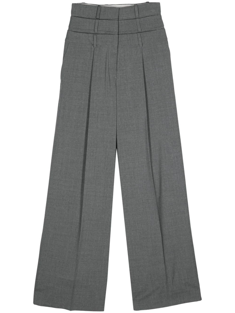 multi-layered trousers Highlights - Medium grey - Wool - Melange effect - Tailored design - Layered waistband - High waist - Belt loops - Two side slash pockets - Front pleat detailing - Full-length - Two rear welt pockets - Straight leg - Front concealed hook and zip fly fastening Imported Composition Wool 100% Washing instructions Dry Clean Only