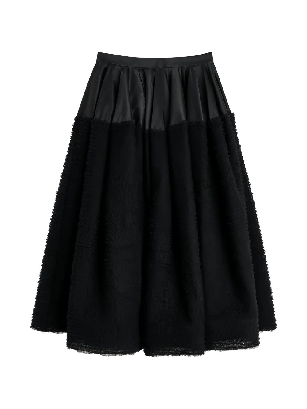 panelled skirt Highlights - Black - Textured fabric - Panel design Imported Composition Polyester 69%, Silk 31%