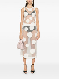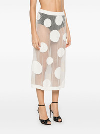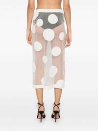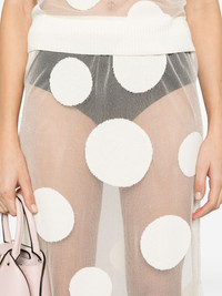 polka-dot midi skirt Highlights - Cream white - Mesh design - Polka dot embroidery - Semi-sheer construction - Metallic threading - Elasticated waistband - Ribbed trim - Unlined - Straight hem - Mid-length Imported Composition Polyamide 70%, Polyester 30% SIZE & FIT Model measurements Height 5 ft 10 in(1.78 m) Bust/Chest 33.85 in(86 cm) Hips 36.61 in(93 cm) Waist 26.77 in(68 cm) FittingInformation This midi-length skirt is intended to be worn just below the waist The elasticated waist allows for a comfortable fit Made with a fine knit, this piece offers some stretch Washing instructions Dry Clean Only