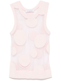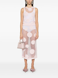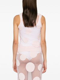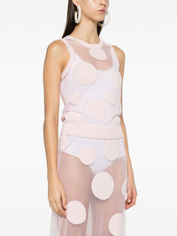 polka-dot tank top Highlights - Light pink - Mesh design - Semi-sheer construction - Polka dot embroidery - Crew neck - Sleeveless - Ribbed hem Imported Composition Polyamide 70%, Polyester 30% SIZE & FIT Model measurements Height 5 ft 10 in(1.78 m) Bust/Chest 33.85 in(86 cm) Hips 36.61 in(93 cm) Waist 26.77 in(68 cm) FittingInformation Designed for a slim fit that sits just away from the body offering a close yet comfortable fit Made with a fine knit, this piece offers some stretch Washing instructions Dry Clean Only
