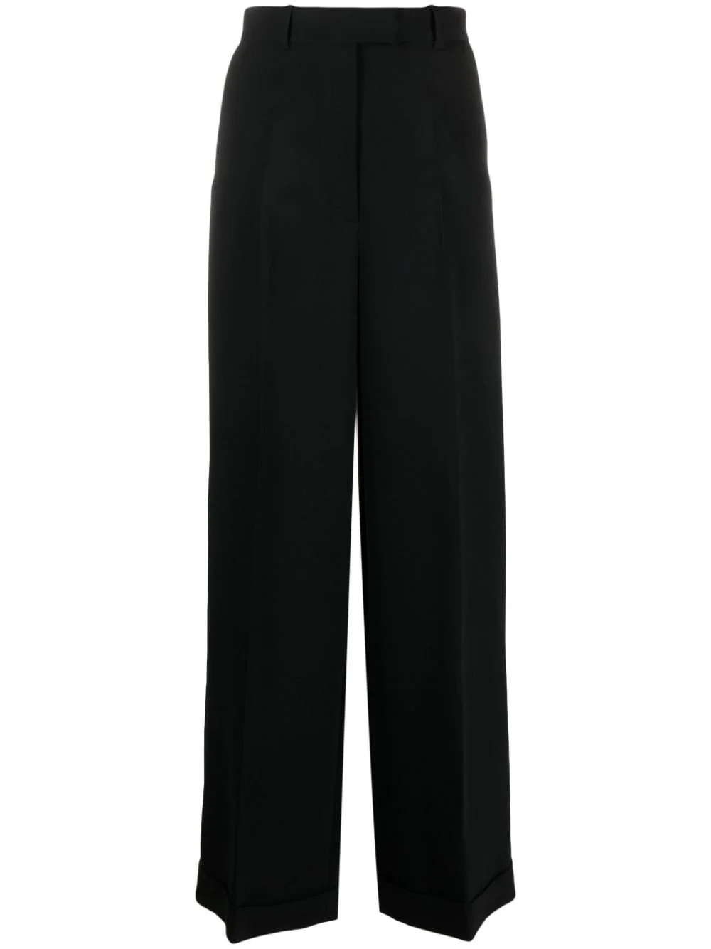 pressed-crease concealed-fastening tailored trousers Highlights - Black - Pressed crease - Belt loops - Concealed front fastening - Two side slit pockets - Two rear jetted pockets - Turn-up brim - Tailored cut Imported Composition Polyester 100% Washing instructions Dry Clean Only