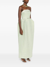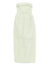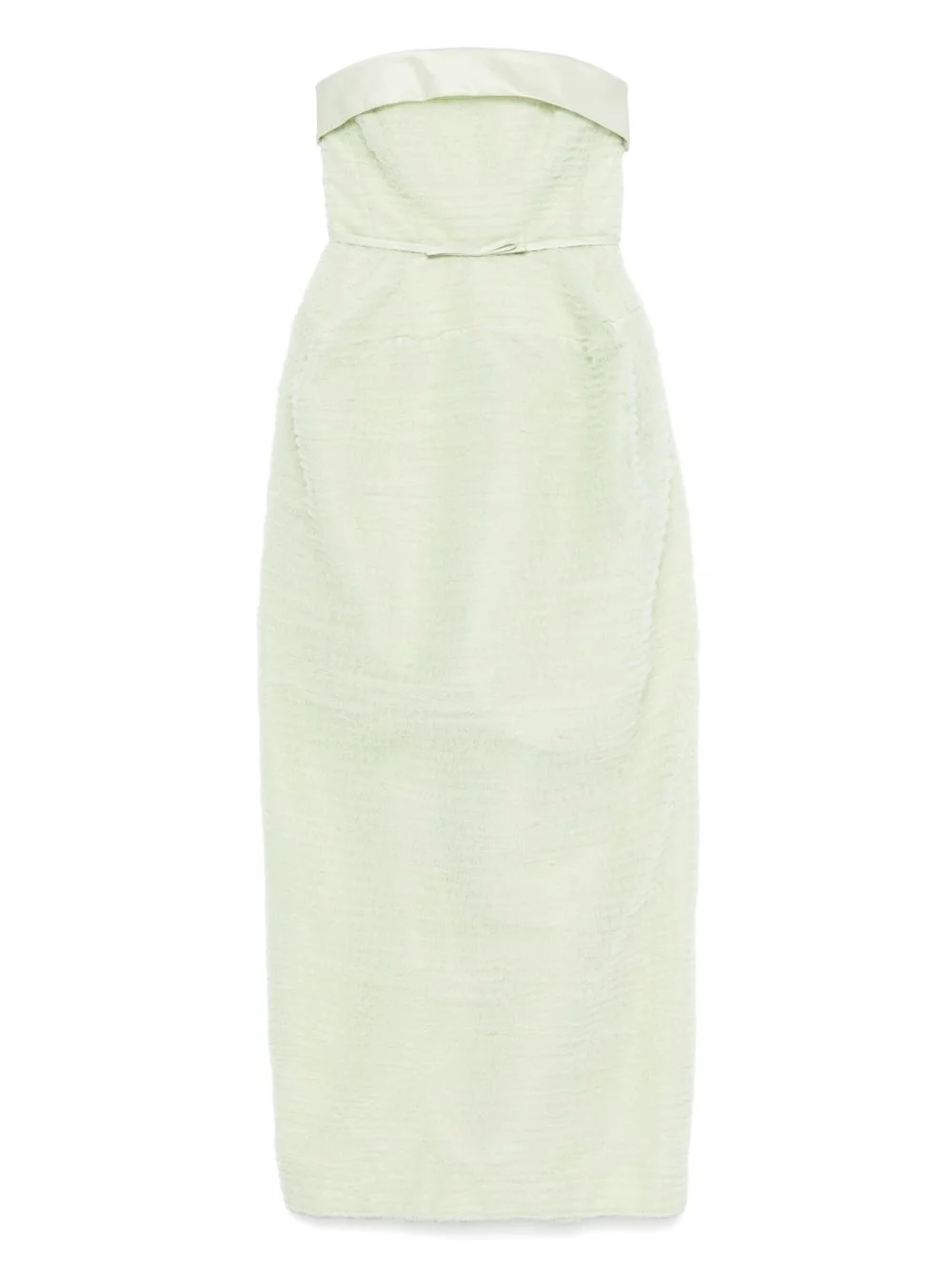 ruffled maxi dress Highlights - Mint green - Rear zip fastening - Belted waist - Strapless - Tulip design Imported Composition Polyamide 100% SIZE & FIT Model measurements Height 5 ft 10 in(1.78 m) Bust/Chest 31.49 in(80 cm) Hips 37 in(94 cm) Waist 23.62 in(60 cm) FittingInformation Designed for a close fit at the chest and waist with a loose fit at the hip Made from a midweight non-stretch fabric, this piece offers minimal elasticity when worn Washing instructions Dry Clean Only