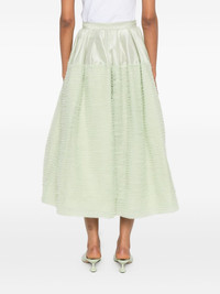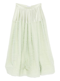 ruffled satin A-line skirt Highlights - Light green - Ruffled texture - Satin waistband - A-line shape Imported Composition Polyester 69%, Silk 31% SIZE & FIT Model measurements Height 5 ft 10 in(1.77 m) Bust/Chest 33.07 in(84 cm) Hips 37 in(94 cm) Waist 24.8 in(63 cm) FittingInformation This midi-length skirt is intended to be worn high on the waist Made from a midweight non-stretch fabric Washing instructions Dry Clean Only