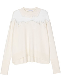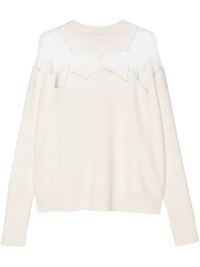 semi-sheer panel sweater Highlights - White - Ribbed knit - Semi-sheer mesh panelling - Crew neck - Drop shoulder - Long sleeves - Ribbed cuffs and hem - Straight hem Imported Composition Other Fabrics 100% Washing instructions Dry Clean Only