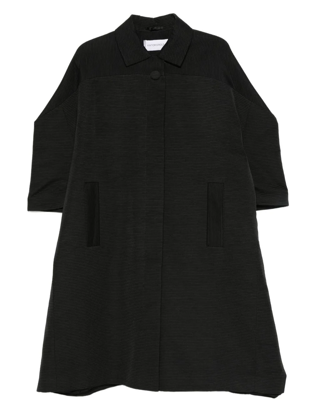 single-breasted coat Highlights - Black - Front button fastening - Short sleeves - Side slit pockets Imported Composition Cotton 68%, Polyester 32% Washing instructions Dry Clean Only