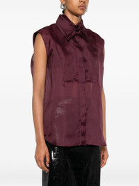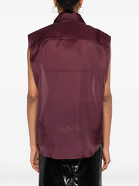 sleeveless button-down shirt Highlights - Burgundy - Button fastening - Large collar - Sleeveless Imported Composition Silk 100% SIZE & FIT Model measurements Height 5 ft 10 in(1.77 m) Bust/Chest 33.07 in(84 cm) Hips 37 in(94 cm) Waist 24.8 in(63 cm) FittingInformation Designed to be unstructured, offering a loose fit throughout Washing instructions Dry Clean Only