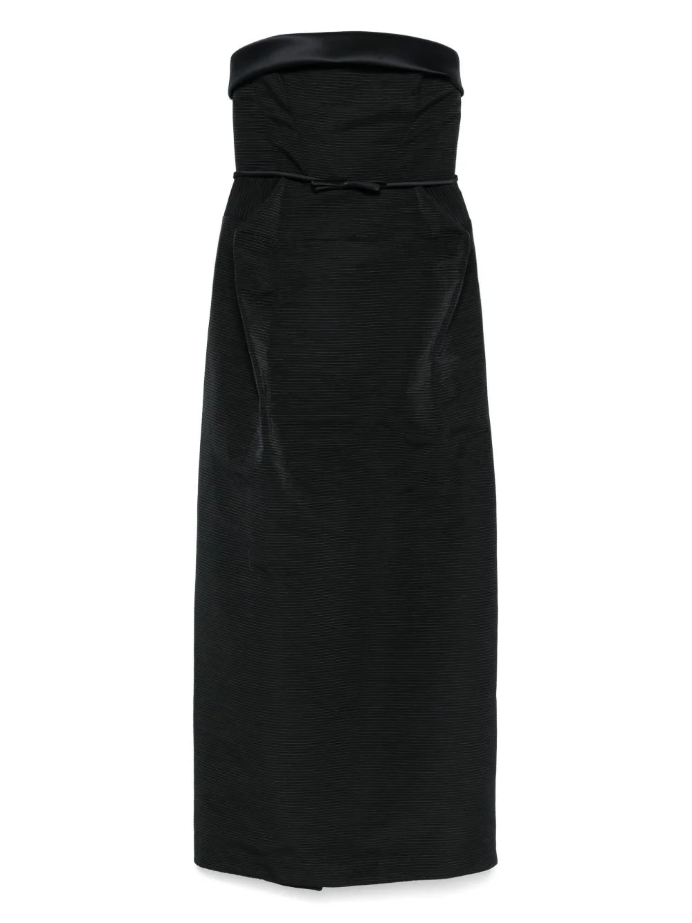strapless gown Highlights - Black - Concealed rear zip fastening - Belted waist - Peplum waist - Tulip design Imported Composition Cotton 68%, Polyester 32% SIZE & FIT Model measurements Height 5 ft 10 in(1.78 m) Bust/Chest 31.49 in(80 cm) Hips 37 in(94 cm) Waist 23.62 in(60 cm) FittingInformation Designed for a close fit at the chest and waist with a loose fit at the hip Made from a midweight non-stretch fabric, this piece offers minimal elasticity when worn Washing instructions Dry Clean Only