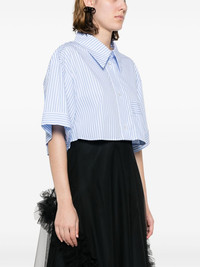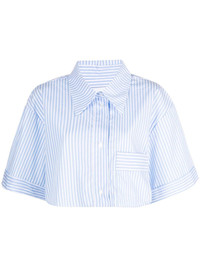 striped cropped organic-cotton shirt Highlights - Blue/white - Organic cotton - Poplin texture - Stripe print - Classic collar - Short sleeves - Chest patch pocket - Cropped - Straight hem Imported Composition Organic Cotton 100% SIZE & FIT Model measurements Height 5 ft 10 in(1.79 m) Bust/Chest 32.67 in(83 cm) Hips 34.25 in(87 cm) Waist 24.4 in(62 cm) FittingInformation Designed to be unstructured, offering a loose fit throughout Cropped in length Made from a midweight non-stretch fabric This piece fits true to size – take your usual size Washing instructions Dry Clean Only