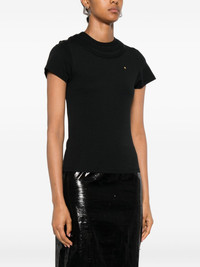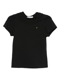 triple collar T-shirt Highlights - Black - Triple-layered collar - Short sleeves - Round neck - Gold embellishment - Stretch-cotton Imported Composition Supima Cotton 96%, Elastane 4% SIZE & FIT Model measurements Height 5 ft 10 in(1.77 m) Bust/Chest 33.07 in(84 cm) Hips 37 in(94 cm) Waist 24.8 in(63 cm) FittingInformation Designed for a slim fit that sits just away from the body offering a close yet comfortable fit Washing instructions Dry Clean Only