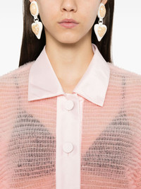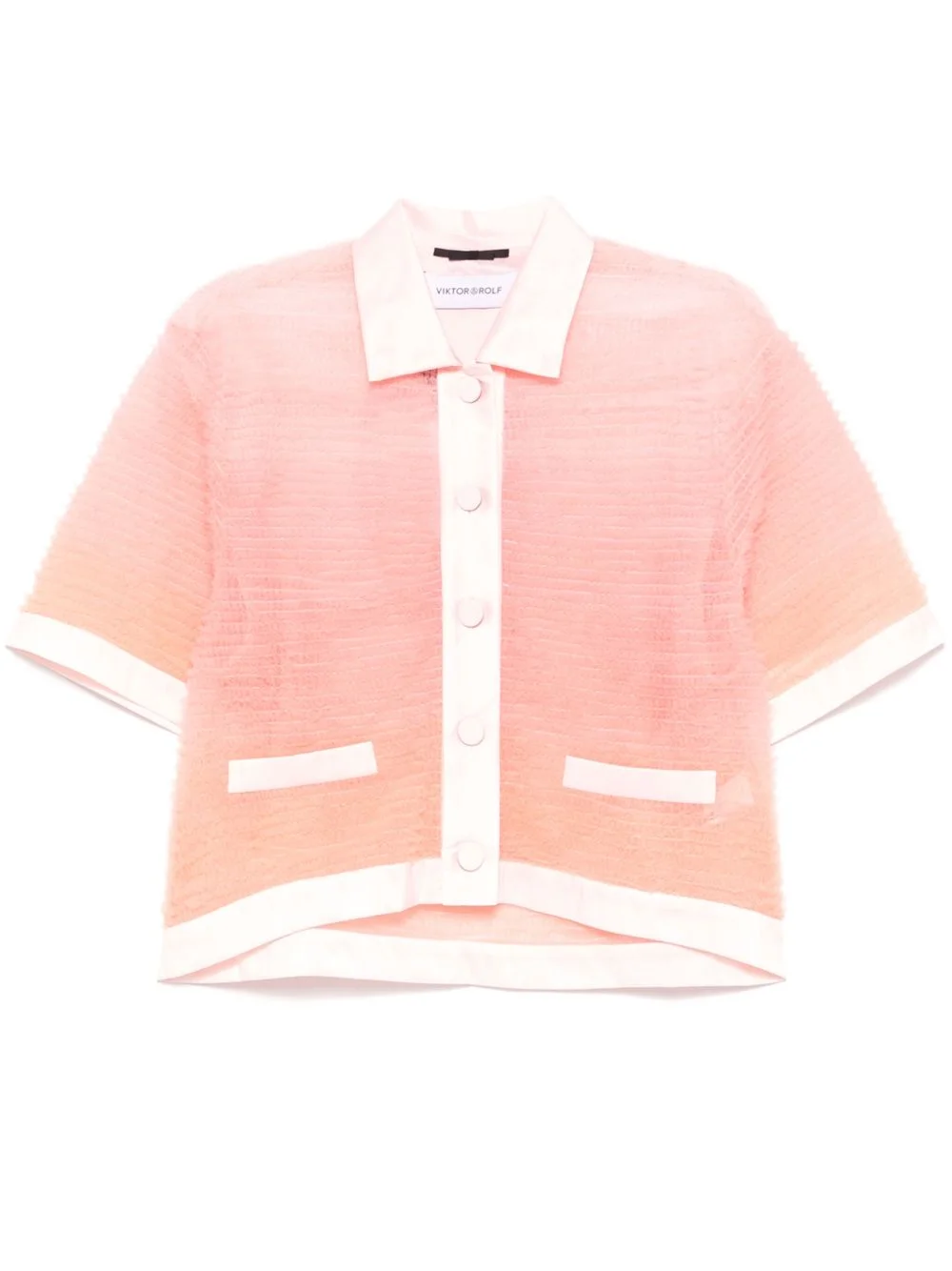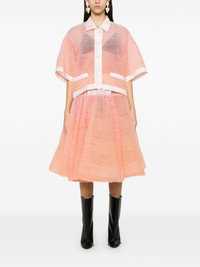 tulle shirt Highlights - Salmon pink - Mesh design - Semi-sheer construction - Tulle inserts - Fully ruffled - Front button fastening - Satin trim - Spread collar - Drop shoulder - Short sleeves - Faux pockets - Straight hem Imported Composition Polyamide 100% SIZE & FIT Model measurements Height 5 ft 10 in(1.78 m) Bust/Chest 33.85 in(86 cm) Hips 36.61 in(93 cm) Waist 26.77 in(68 cm) FittingInformation Designed for an oversized fit, offering additional room throughout Made from a lightweight non-stretch fabric Washing instructions Dry Clean Only