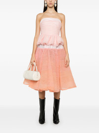 tulle top Highlights - Light pink - Tulle overlay - Fully ruffled - Concealed side hook and zip fastening - Bandeau style - Two adjustable detachable shoulder straps - Satin trim - Full lining - Peplum hem Imported Composition Outer: Polyamide 100%, Polyester 69%, Silk 31% Lining: Cotton 100% SIZE & FIT Model measurements Height 5 ft 10 in(1.78 m) Bust/Chest 33.85 in(86 cm) Hips 36.61 in(93 cm) Waist 26.77 in(68 cm) FittingInformation Designed for a close fit at the chest and waist with a loose fit at the hip The detachable straps offer an alternate way to wear this piece Made from a midweight non-stretch fabric Washing instructions Dry Clean Only
