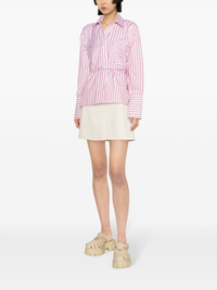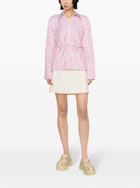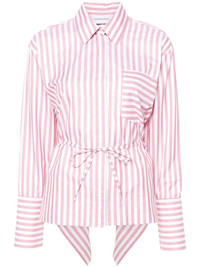 Volant open back striped shirt Highlights - Clay red - White - Poplin texture - Vertical stripe pattern - Classic collar - Open back - Tied waist - Concealed front button fastening - Long sleeves - Buttoned cuffs - Chest patch pocket - High-low hem Imported Composition Nylon 85%, Polyester 15% SIZE & FIT Model measurements Height 5 ft 10 in(1.78 m) Bust/Chest 29.92 in(76 cm) Hips 34.64 in(88 cm) Waist 23.62 in(60 cm) FittingInformation Designed for a relaxed fit, this piece allows for comfort and movement when worn The adjustable tie waist gives a more adaptable and personalised fit Made from a midweight non-stretch fabric This piece fits true to size – take your usual size Washing instructions Dry Clean Only