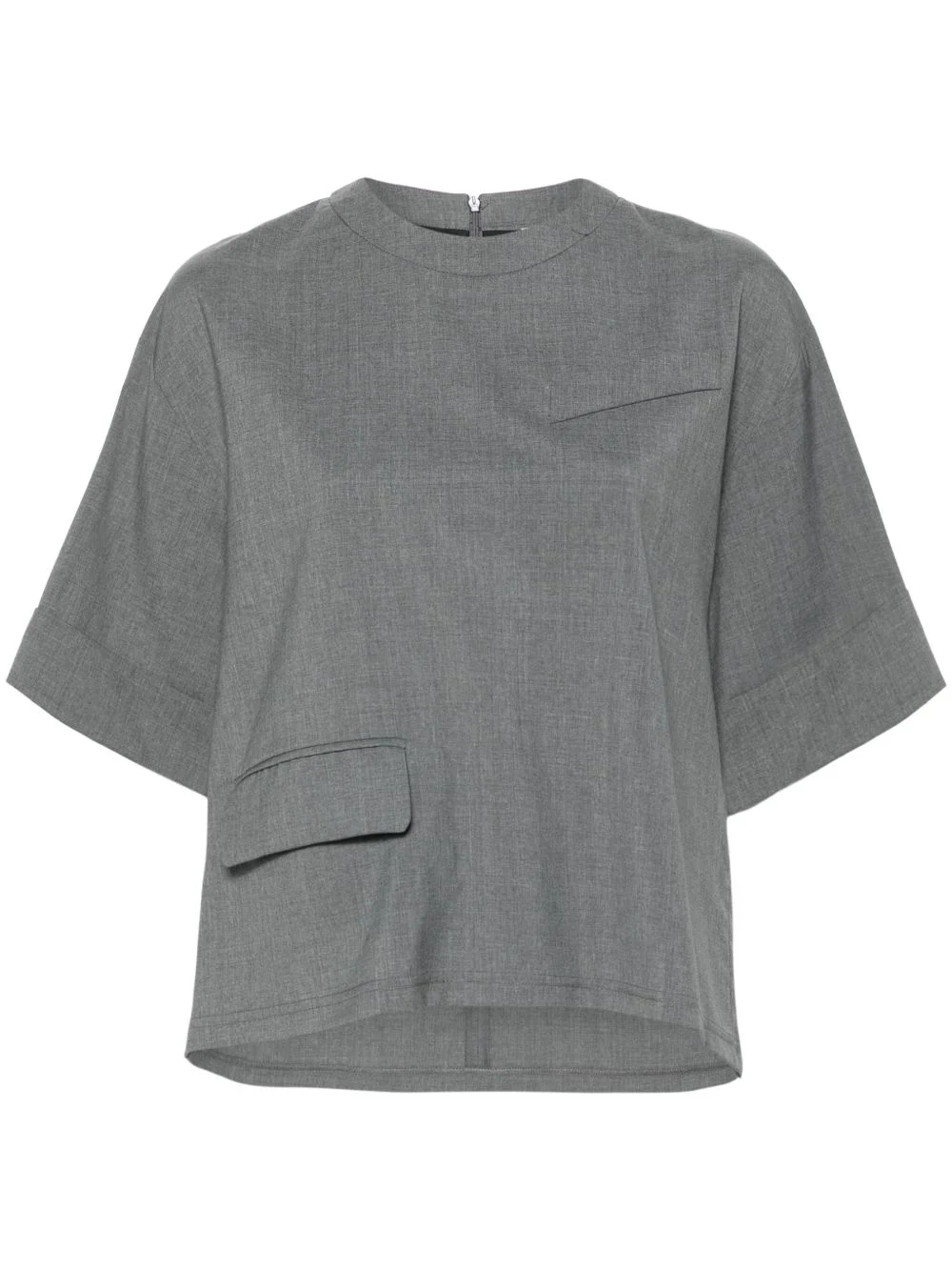 wool top Highlights - Medium grey - Wool - Melange effect - Concealed rear zip fastening - Crew neck - Short sleeves with folded edge - Chest faux pocket detail - Side flap pocket - Straight hem Imported Composition Wool 100% SIZE & FIT Model measurements Height 5 ft 11 in(1.8 m) Bust/Chest 33.07 in(84 cm) Hips 37.4 in(95 cm) Waist 25.19 in(64 cm) FittingInformation Designed for a boxy fit, intended for a loose fit throughout Made from a midweight non-stretch fabric This piece fits true to size – take your usual size Washing instructions Dry Clean Only