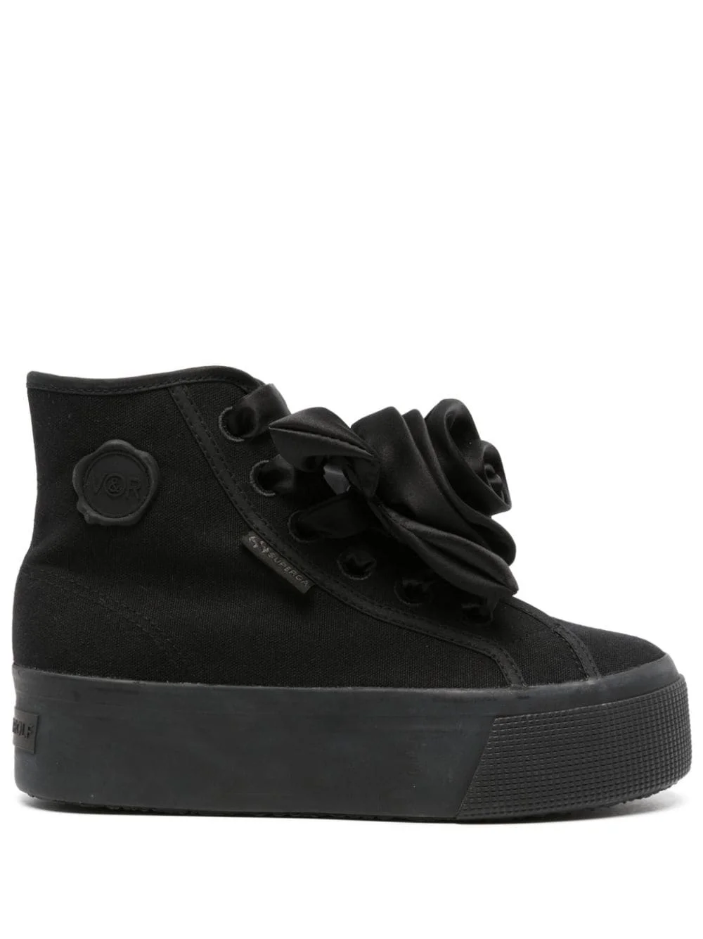 x Superga satin-rose high-top sneakers Highlights - Black - Cotton - Canvas - Floral applique - Logo patch to the side - Mini logo tag - Round toe - Front lace-up fastening - Satin laces - 40mm platform sole - Branded insole - Canvas lining Imported Composition Cotton 100% SIZE & FIT Measurement HEEL 1.77 in(4.5 cm) PLATFORM 1.77 in(4.5 cm)
