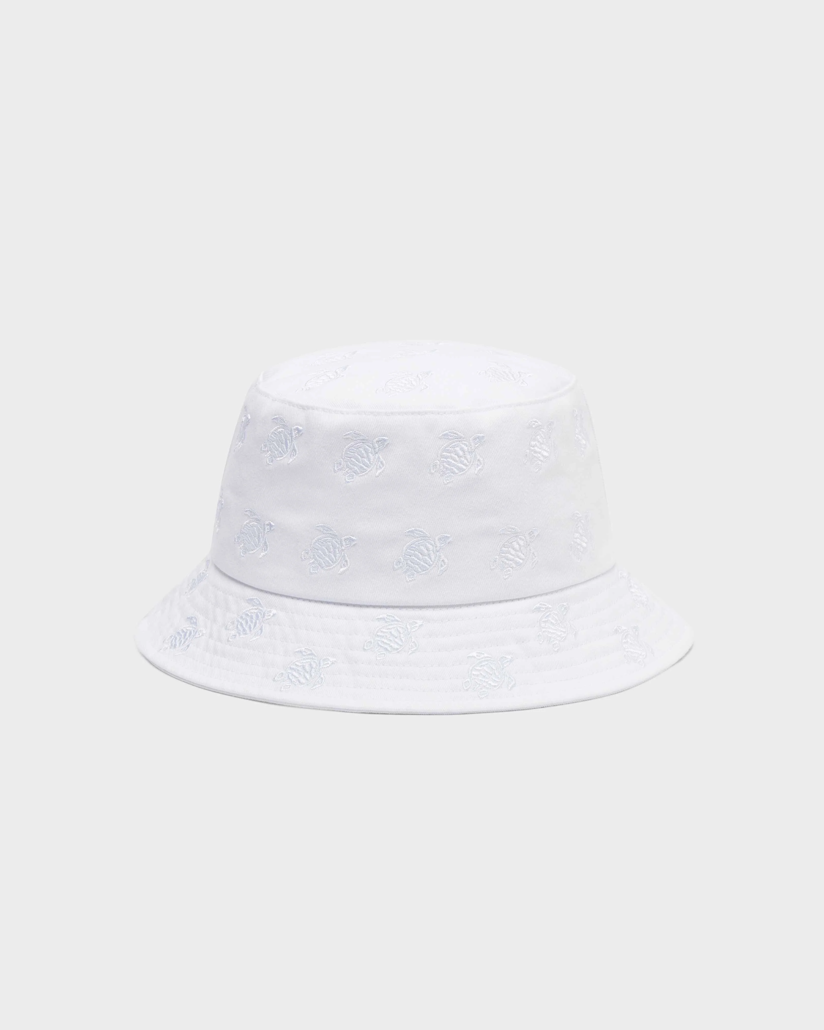 An original embroidered bucket hat made for summer days. Features the iconic Vilebrequin logo and turtles for a distinctive look. - Bucket hat for men - One size men's bucket hat - Embroidered tone on tone turtle - Regular cut - 100% Cotton Product Information Style: Boom Model: OOMC4493-010 Color: WHITE / WHITE