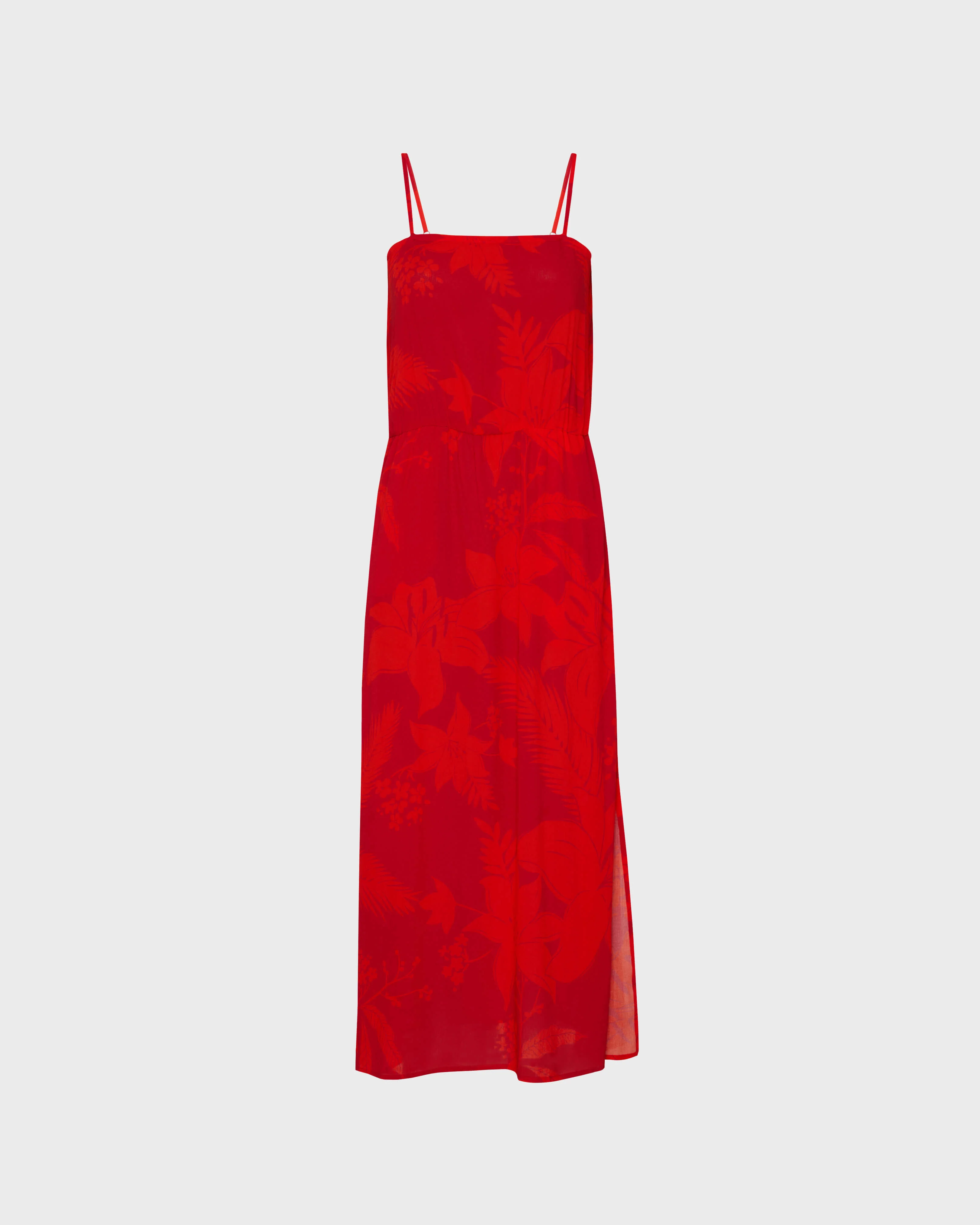 A glamourous day or evening dress adorned with a floral tropical print. Adjustable straps offer the perfect fit and cool viscose ensures just the right amount of flow. Product Information Style: Louane Model: ENACX418-228 Color: LIPSTICK / RED