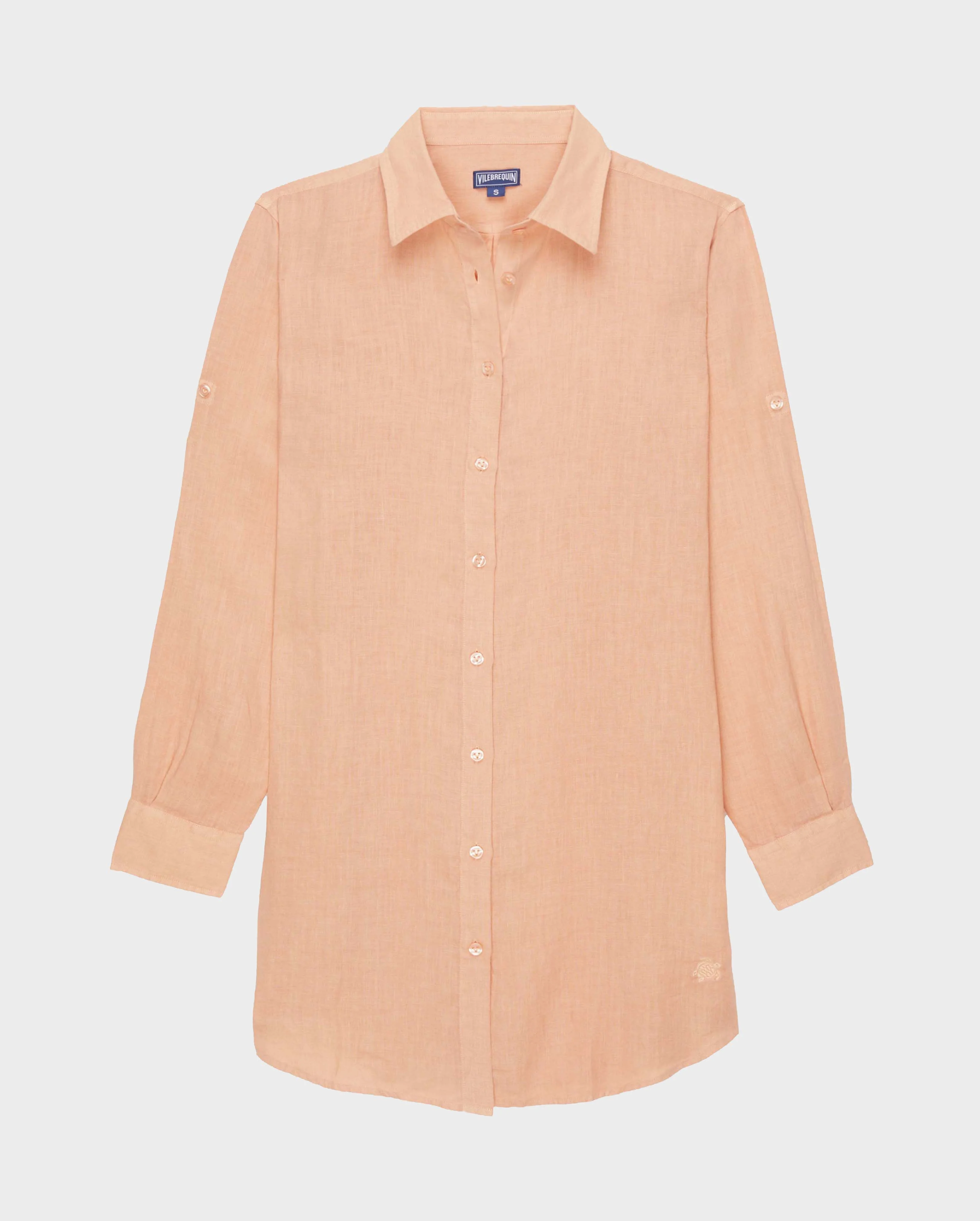 Product Detail 100% Linen Slip on the Fragance women's shirt-dress over your swimsuit after your daily swim. The light and floaty linen fabric is particularly comfortable, making it perfect for laid-back holidays. Its loose cut and long sleeves makes this plain shirt the ultimate in casual chic. - Women long sleeve collared shirt dress - Long cut - Tone on tone embroidered Turtle on left bottom hem - "V" buttons - Women linen shirt dress - Solid women linen shirt dress Care To take care of your adored Women Summer Shirt Dress, we advise you to follow our suggestions below: - Wash your Shirt Dress at 30°C with similar colors. - Do not use oxygenated or chlorine based bleach/ stain removers, your Summer Shirt Dress won't appreciate it. - Air-dry your Shirt Dress and do not use tumble dryer. - Regular steam or dry iron inside out, with maximum setting at 150°C. - You can dry clean your Shirt Dress.