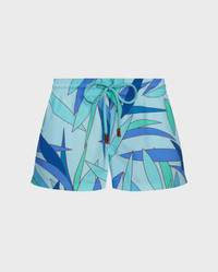 Product Detail 98% recycled polyamide 2% elastane These colourful women's swim shorts, made from stretch fabric for comfort, feature the iconic Vilebrequin logo on the back and are finished with engraved tips for added detail. - Women Straight cut swim shorts - Slits on sides - Elastic belt with drawstring and Vilebrequin engraved "turtle scale like" tips - Tone-on-tone embroidered Turtle on left bottom hem - Stretch Fabric - Two sides pockets - Women swim Shorts - Women swim Shorts Madrague - 98% recycled polyester 2% elastane Care To take care of your women swim Shorts we advise you to follow our suggestions below: - Wash at 86F - Dry line in the shade - Do not bleach - Do not tumble dry - Iron at low temperature - Do not dry clean - Wash with similar colours - Iron inside out