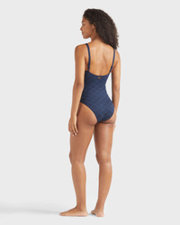 The perfect one-piece swimsuit for all-day wear thanks to the comfortable stretch fabric fashioned with the iconic VBQ monogram. Sculpted in a flattering shape with adjustable straps and underwiring. - Bustier One-piece Swimsuit for women - Adjustable straps not removable - With frames, without padding - V-shaped neckline - Vintage inspiration - B cup for size S - Women One-piece swimsuit - The model is 5'9.29" and wears a S size - 81% polyamide 19% elasthane Product Information Style: Leonita Model: LNICG437-390 Color: NAVY / BLUE