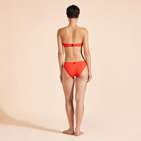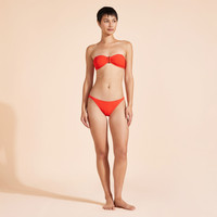 Turn heads in this eye-catching bikini top made from recycled polyamide and elastane for a sleek fit. - Women bandeau bikini top - Strapless bikini top with back clasp - Inner silicone straps - Rectangular ring engraved tortoise tips - No padding - Women Bikini Top - Women Bikini Top Jacquard Vichy - 92% Recycled Polyamide - 8% Elastane