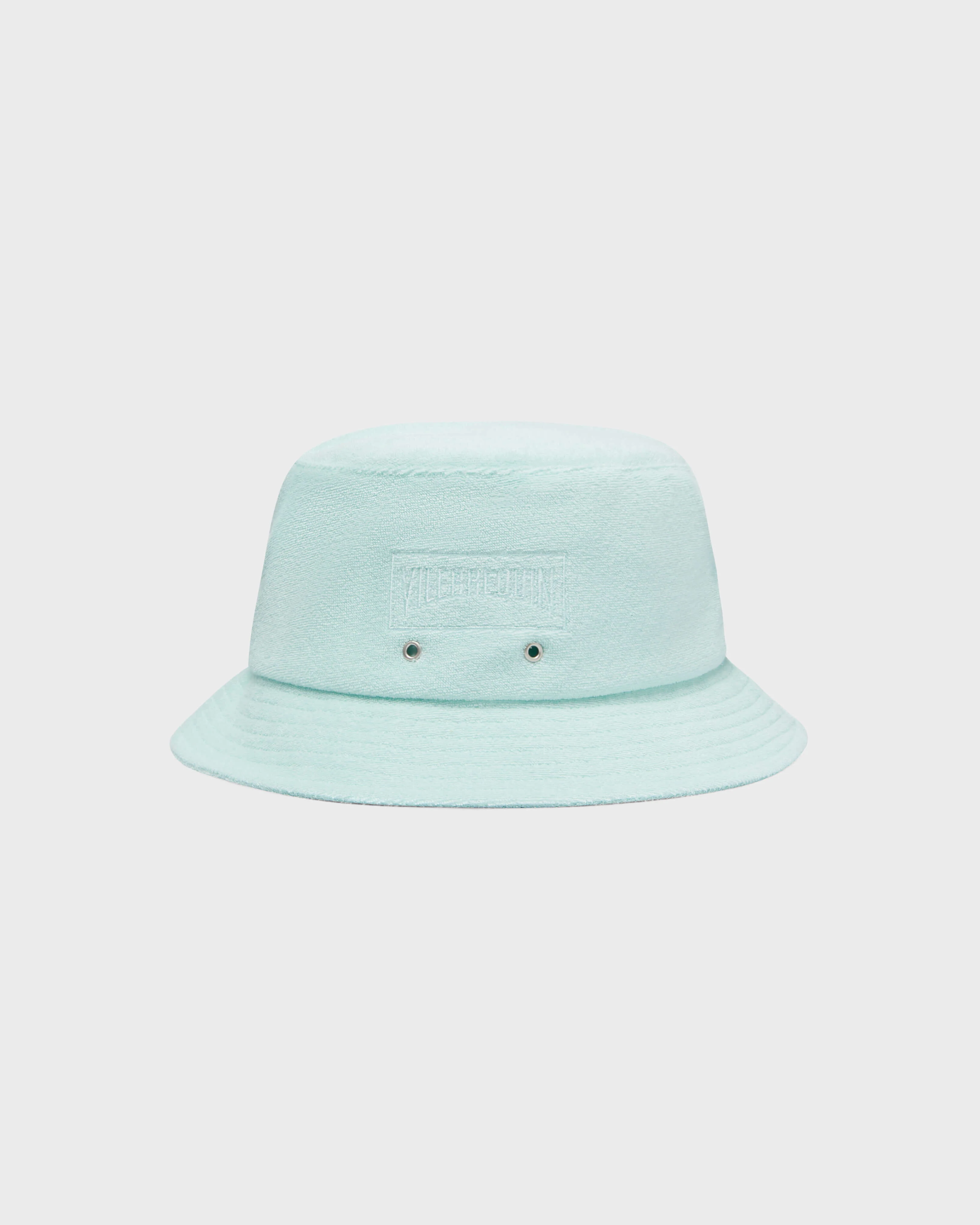 A soft terry unisex bucket hat made for summer days. Features the iconic Vilebrequin logo and Ronde des Tortues embellishment for a distinctive look. - Bucket hat - Terry cloth fabric - Two back eyelets - Dimensions: XS/S 22.8" - Dimensions: M/L: 23.6" - Unisex Hat - Unisex Hat Solid - 80% cotton 20% polyester