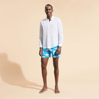 Learn the art of minimalism with the Caracal organic cotton voile shirt. Lightweight and minimalist, it can be worn for every occasion, from sunny adventures to sophisticated evenings out. A shirt for men or women that is elegant in every circumstance - Caracal long-sleeved, fitted, straight-cut shirt - French-collar shirt for men or women - Shirt for men and women featuring a chest patch pocket - Tone-on-tone embroidery of the iconic Vilebrequin turtle on the bottom of this Caracal shirt - Solid organic cotton veil shirt A timeless shirt for men and women - Very pleasant-to-wear, lightweight cotton-voile shirt - Caracal design A quality shirt made to last - All the components of this Caracal cotton shirt, from the thread to the buttons, are designed to withstand wear and tear. - Model wears size M - Model measurements: Bust 38.6”, Height 74.4”, Waist 29.9”, Hips 37.4” Composition of the Caracal shirt: - 100% Organic Cotton