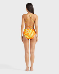 This vibrant backless swimsuit exudes sophistication, featuring a strap adorned with Vilebrequin tips that crosses at the back and ties at the front. A faux-tortoiseshell plaque adds an elegant finish. Product Information Style: Hydra Model: HYDCH144-195 Color: APRICOT / ORANGE