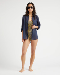 Show off a sun-kissed glow in this stylish recycled polyamide and elastane women swimsuit that offers a structured fit. Designed in a graphic Carapaces print for eye-catching sophistication. - Printed One-piece swimsuit with high back - Curved neckline with silicone trim inside for a better support - Removable and ajustable straps for more swimming comfort - Removable cups - Tortoise Vilebrequin detail on back - The model is 68.8" tall and wears a size S - Women One-piece Swimsuit Carapaces - Women One-piece Swimsuit - 82% recycled polyamide 18% elastane Product Information Style: Facette Model: FTEZF702-390 Color: NAVY / BLUE