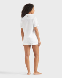 Product Detail 100% cotton A flattering women's polo shirt crafted from delicate Broderie Anglaise. This design features a tonal turtle embroidered on the hem and the Vilebrequin faux-tortoiseshell logo on the back collar. - Women cotton Polo shirt - Front tab two buttons - Short sleeves - Embroidered turtle tone on tone at the bottom - The model is 5'9.29" and wears a S size - Women Polo shirt - Women cotton Polo shirt - 100% cotton Care To take care of your women cotton Polo we advise you to follow our suggestions below: - Wash at 86F delicate - Dry line in the shade - Do not bleach - Do not tumble dry - Do not iron - Do not dry clean - Wash with similar colours
