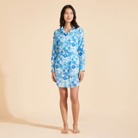 A casual dress shirt perfect for popping over swimwear when lunch or sightseeing calls. Crafted from organic cotton for cool comfort and featuring a tie-belt to flatter the figure. - Women Dress Shirt - Long sleeves and mid-length - Tone on tone embroidered Turtle on left bottom hem - Belt to be tied - Middle back Length for a size S: 35.82" - Women Shirt Dress - Women Shirt Dress Tahiti Flowers - 100% Organic Cotton