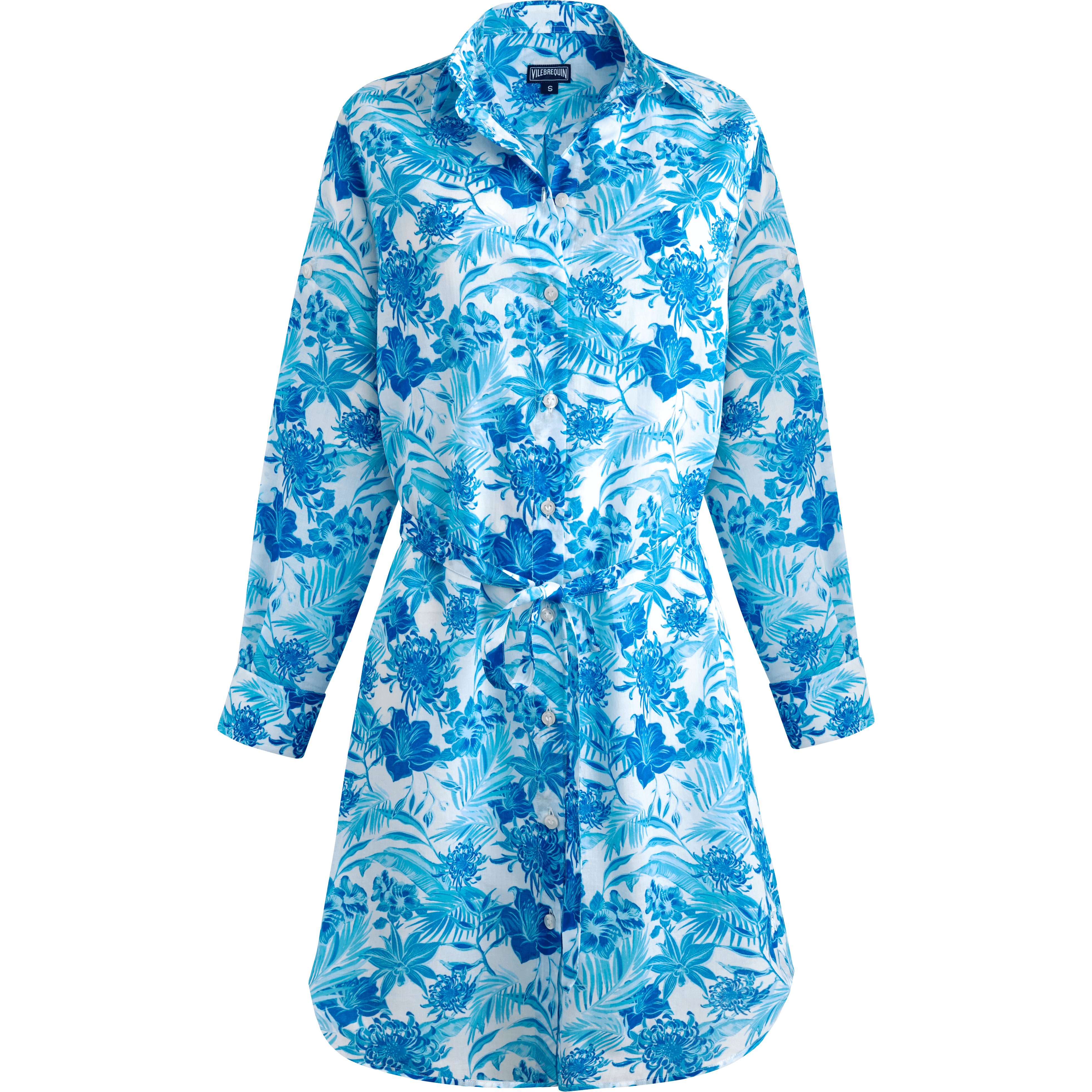 Women Cotton Voile Shirt Dress Tahiti Flowers