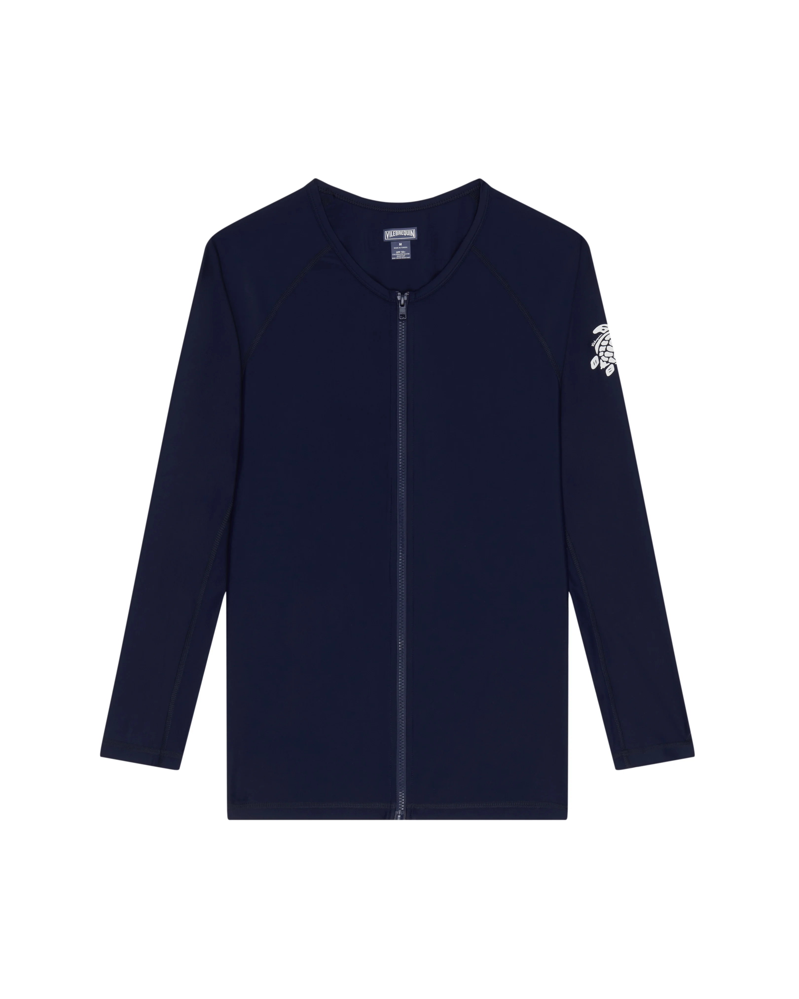 Product Detail 78% Recycled Polyamide 22% Elastane Play with contrasts with the crazy colour schemes on this women's UV protection plain zip-up T-shirt. This long-sleeved basic features a Vilebrequin turtle printed on one arm like a tattoo. It has a zip at the front and tailored sides - Women Round collar Rashguard - A real protective armour to face the dazzling sun with serenity! - Long raglan sleeves - UPF50+ - Resistance sunscreen and oil - Extra resistant - Shape retention - The model wears a S size - Model measurement: Chest 80cm, Height 176cm, Waist 60cm, Hips 90cm - Women Rashguard - Solid Women Rashguard Care To take care of your favourite Women Rashguard, we advise you to follow our suggestions below: - Wash your Rashguard at 30°C with similar colors. - Do not use oxygenated or chlorine based bleach/ stain removers. - Air-dry your Rashguard and do not use tumble dryer. - Regular steam or dry iron inside out, with maximum setting at 110°C. - Do not dry clean your Rashguard.