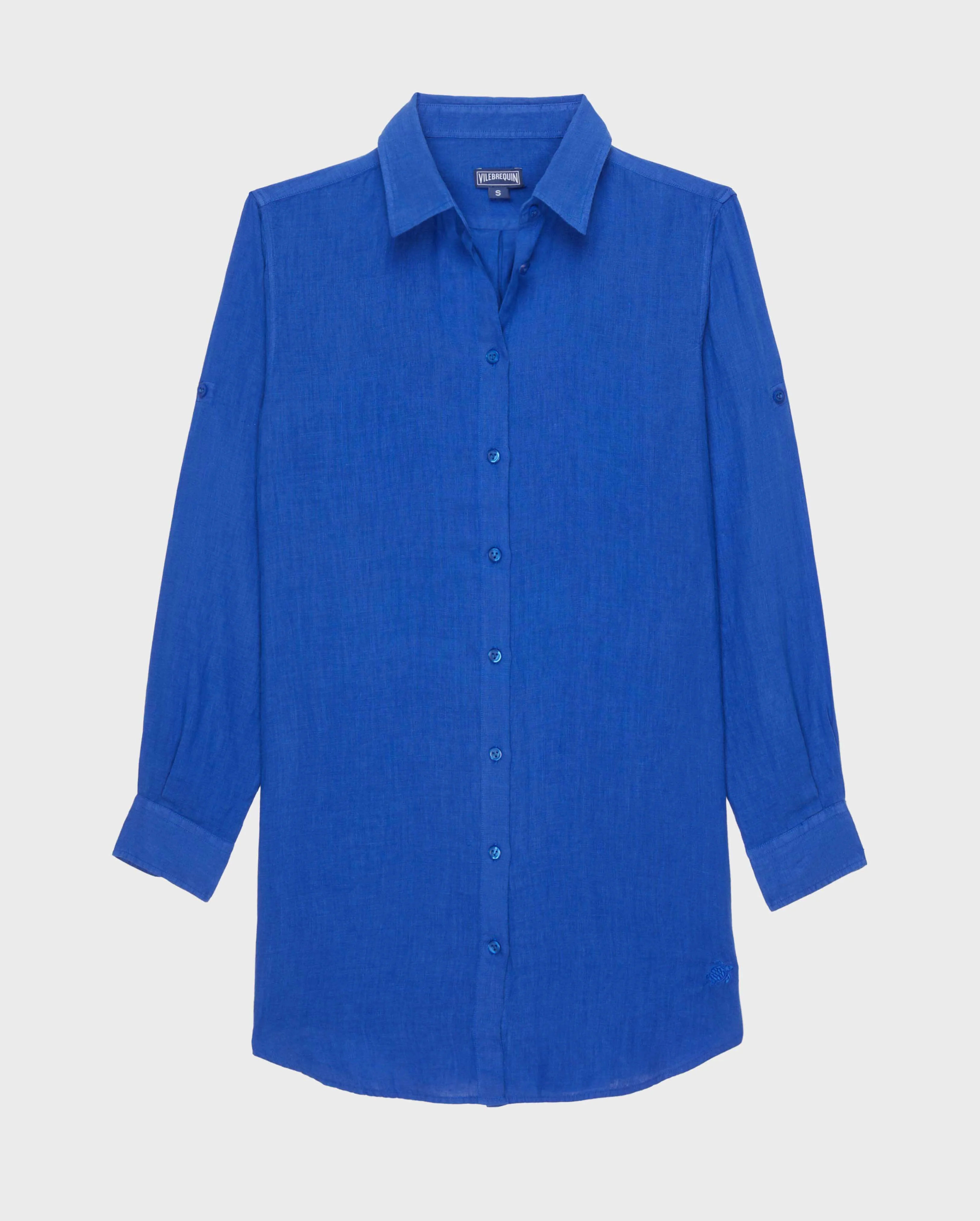 Product Detail 100% Linen Slip on the Fragance women's shirt-dress over your swimsuit after your daily swim. The light and floaty linen fabric is particularly comfortable, making it perfect for laid-back holidays. Its loose cut and long sleeves makes this plain shirt the ultimate in casual chic. - Women long sleeve collared shirt dress - Long cut - Tone on tone embroidered Turtle on left bottom hem - "V" buttons - Women linen shirt dress - Solid women linen shirt dress Care To take care of your adored Women Summer Shirt Dress, we advise you to follow our suggestions below: - Wash your Shirt Dress at 30°C with similar colors. - Do not use oxygenated or chlorine based bleach/ stain removers, your Summer Shirt Dress won't appreciate it. - Air-dry your Shirt Dress and do not use tumble dryer. - Regular steam or dry iron inside out, with maximum setting at 150°C. - You can dry clean your Shirt Dress.