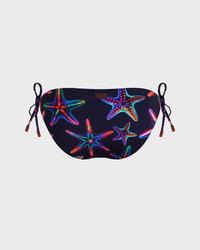 Bright starfish adorn these bikini bottoms, crafted from recycled polyamide and elastane. The low-rise cut side ties feature Vilebrequin-engraved tortoise detail tips for a chic, contemporary look. - String Bikini Bottom - Vilebrequin engraved tortoise detail - Light coverage - The model is 5'8.9" and wears a S size - Women Bikini - Women Bikini Disco Stars - 82% recycled polyamide 18% elastane Product Information Style: Flore Model: FLRCH107-390 Color: NAVY / BLUE