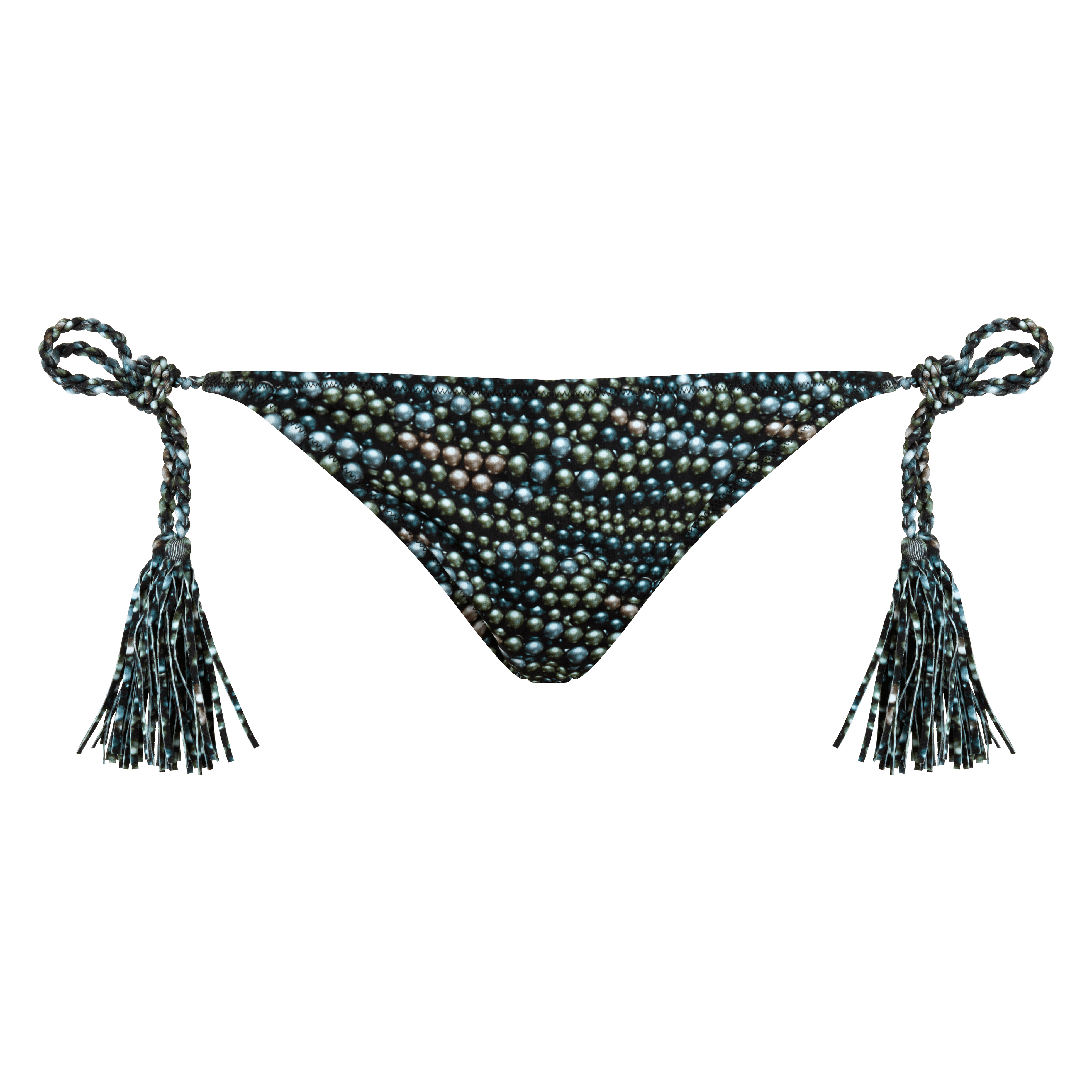 A chic pair of women bikini bottoms in an eye-catching pearl print crafted from recycled polyamide and elastane. Braided side ties with tassels create detail complete the sophisticated look. - Women Bikini bottom with side ties - Braided ties with tassel decoration - Turtle shell imitation Vilebrequin plate - The model is 69.6" tall and wears a size S - Women Bikini Bottom Pearl - Women Bikini Bottom - 82% recycled polyamide 18% elastane Product Information Style: Luxury Model: LXYBH113-990 Color: BLACK / BLACK