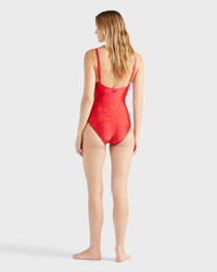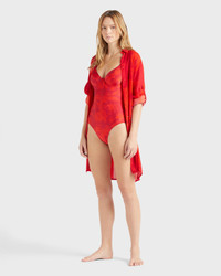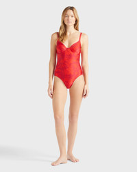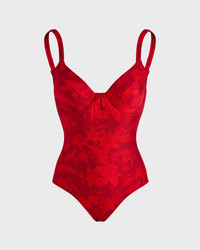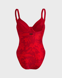 Make a splash in this tropical print swimsuit crafted from comfortable stretchy fabric. A plunging V-neck and underwires maximise the shape, while the Vilebrequin logo on the back confirms style. - Underwire One-piece Swimsuit - Adjustable straps not removable - With frames, without padding - V-shaped neckline - Vintage inspiration - B cup for size S - The model is 5'8.9" and wears a S size - Women Underwire One-piece Swimsuit - Women Underwire One-piece Swimsuit Flower Power - 80% polyamide 20% elastane Product Information Style: Leonita Model: LNICH118-228 Color: LIPSTICK / RED