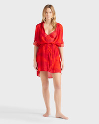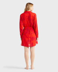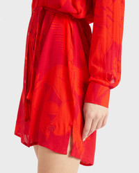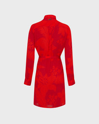 A refined shirt dress adorned with a tropical, tonal print in vibrant lipstick red. Crafted from viscose with a neat collar, long sleeves and a waist-enhancing tie belt. Product Information Style: Florence Model: FNCCX418-228 Color: LIPSTICK / RED