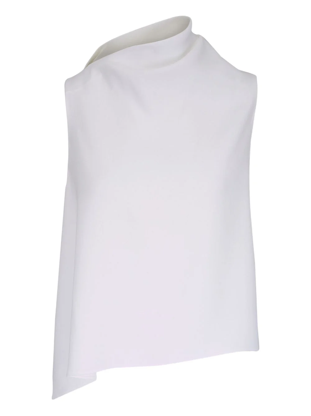 asymmetric-neckline sleeveless top Highlights - White - Asymmetric neckline - Sleeveless - High neck - Straight hem Made in United States Composition Polyester 100% Washing instructions Read Manufacturer Guidelines