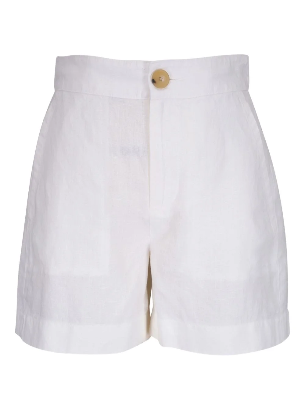 basic shorts Highlights - White - Front button fastening - Rear elasticated waistband - Two side slit pockets - Two rear patch pockets Made in United States Composition Hemp 100%