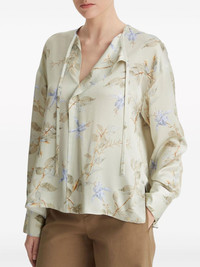 Bellflower silk blouse Highlights - Light green/multicolour - Silk - All-over floral print - V-neck - Long sleeves - Buttoned-cuff sleeves - Straight hem Imported Composition Silk 100% Washing instructions Read Manufacturer Guidelines