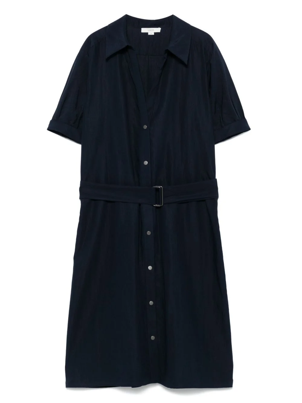 belted mini dress Highlights - Navy blue - Front press-stud fastening - Classic collar - V-neck - Short sleeves Imported Composition TENCEL™ 90%, Nylon 10%