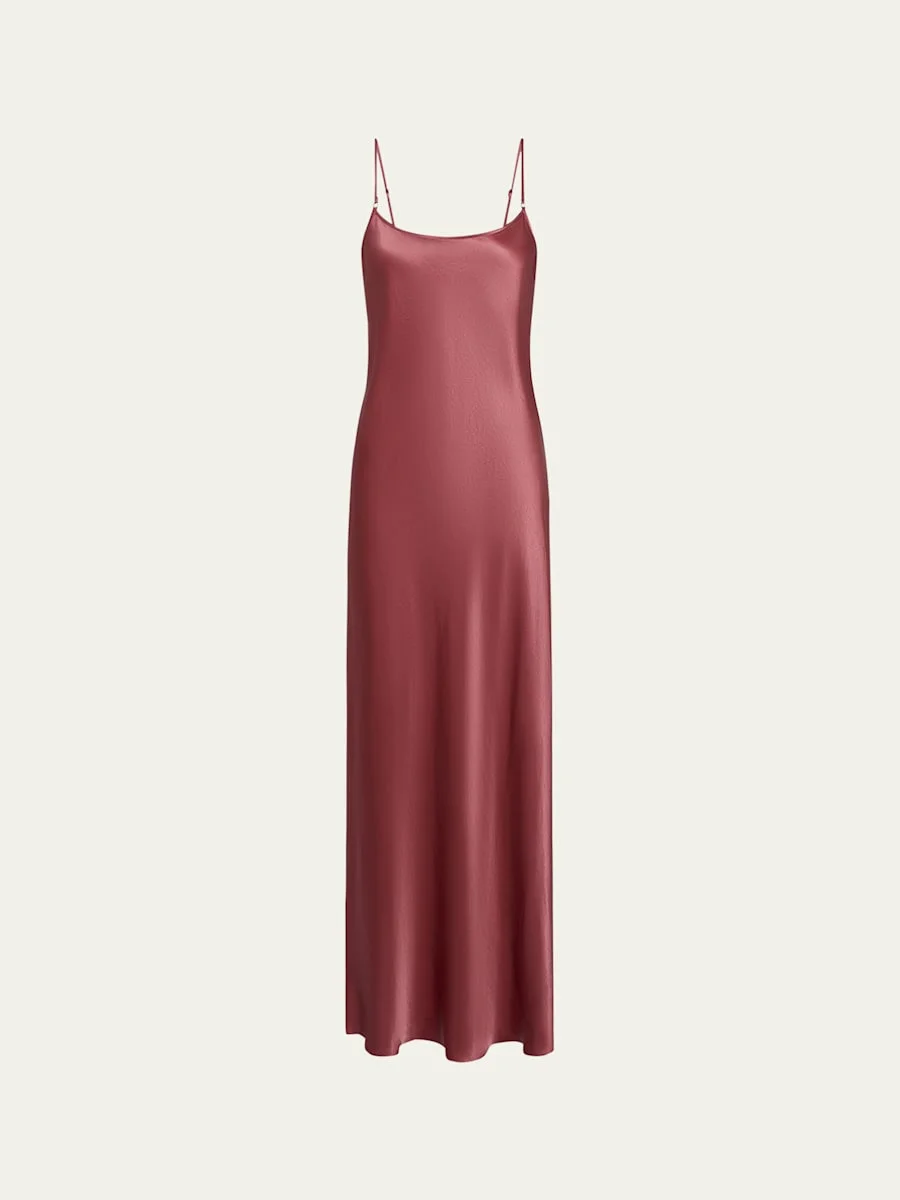 Vince satin bias maxi dress Square neckline Adjustable spaghetti straps Slip silhouette Full length Slipover style Acetate Hand wash or dry clean Imported Online Inquiries: BGS21_T8TDK| Store Inquiries: #5019876