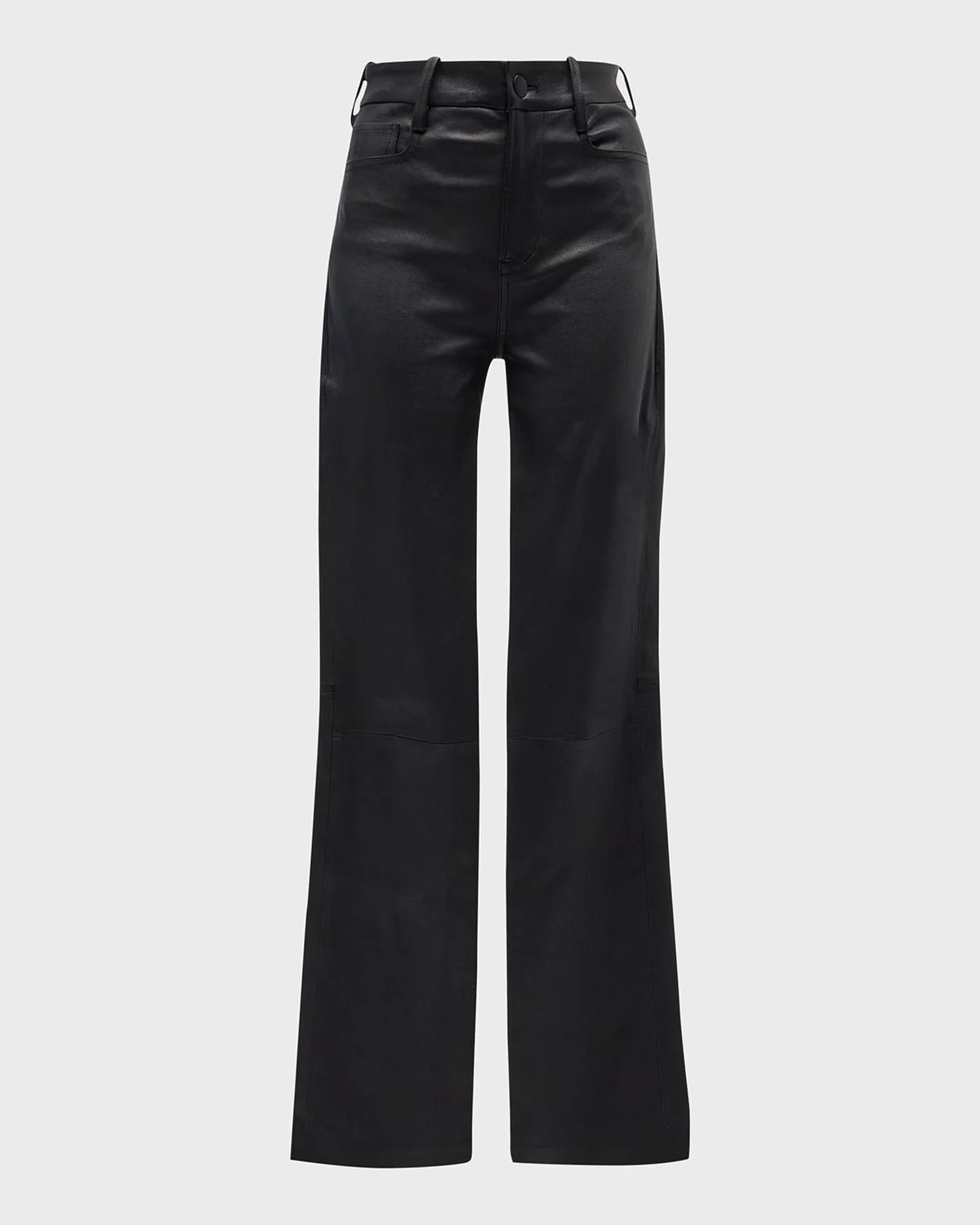Vince stretch leather pants Fourpocket style Mid rise Fitted through hip and thigh; bootcut opening Full length Button/zip fly; belt loops Item runs large, consider ordering a size down Imported