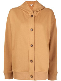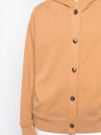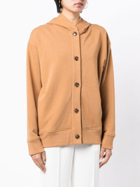 button-up cotton hoodie honey brown cotton jersey knit classic hood front button fastening long sleeves ribbed cuffs ribbed hem Imported Composition Cotton 100% SIZE & FIT Model measurements Height 5 ft 10 in(1.77 m) Bust/Chest 31.49 in(80 cm) Hips 35.43 in(90 cm) Waist 25.19 in(64 cm) FittingInformation This piece fits true to size. We recommend you get your regular size Cut for an oversized fit Made with a mid-weight fabric Washing instructions Machine Wash