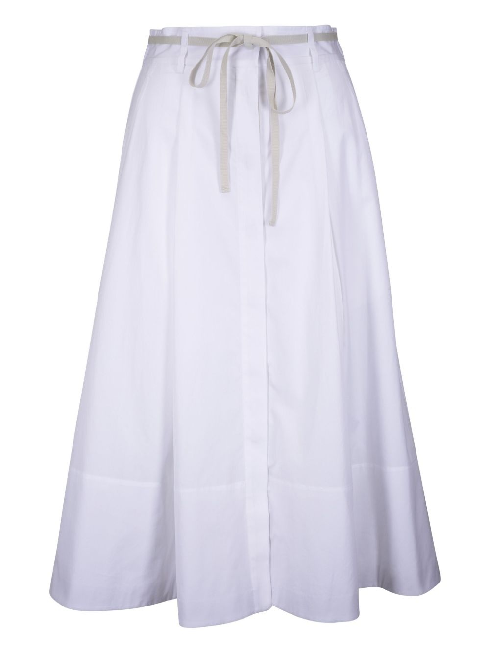 cotton midi skirt Highlights - White - Concealed front fastening - Rear elasticated waistband - Detachable waist belt - Flared Imported Composition Cotton 100%