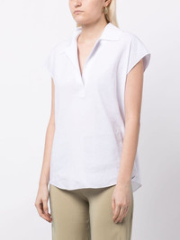 cap-sleeve linen-blend polo shirt Highlights - White - Linen blend - Polo collar - Cap sleeves - Curved hem Imported Composition Linen/Flax 58%, Rayon 39%, Spandex/Elastane 3% SIZE & FIT Model measurements Height 5 ft 9 in(1.76 m) Bust/Chest 31.1 in(79 cm) Hips 35.03 in(89 cm) Waist 24.4 in(62 cm) FittingInformation Designed to be unstructured, offering a loose fit throughout Made from a midweight stretch fabric, this piece offers elasticity and flexibility when worn This piece fits true to size – take your usual size Washing instructions Machine Wash