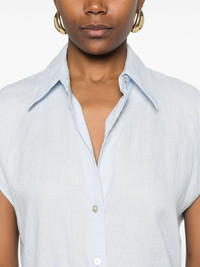 linen cap-sleeve shirt Highlights - Oxford blue - Front button fastening - Classic collar Imported Composition Linen/Flax 100% SIZE & FIT Model measurements Height 5 ft 11 in(1.8 m) Bust/Chest 31.49 in(80 cm) Hips 36.61 in(93 cm) Waist 24.4 in(62 cm) FittingInformation Designed for a relaxed fit, this piece allows for comfort and movement when worn Made from a midweight non-stretch fabric