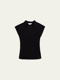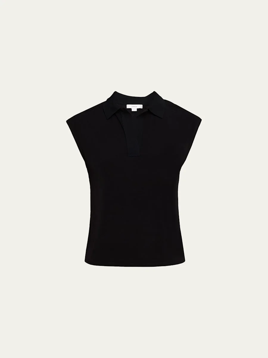 Vince polo-style top Point collar; split V neckline Cap sleeves Classic fit Hem falls to the hip Pullover style Polyester Imported Online Inquiries: BGS21_T6TY5| Store Inquiries: #5034960
