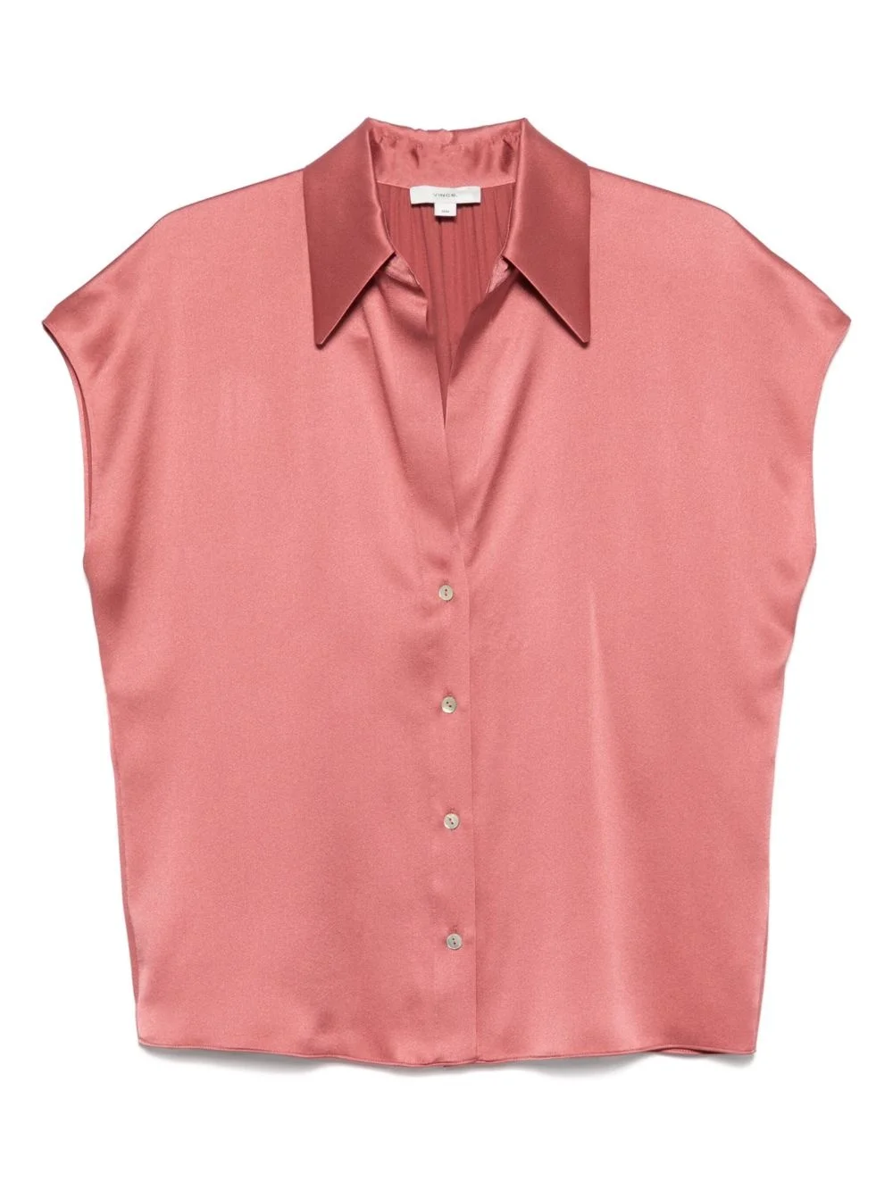 silk shirt Highlights - Coral pink - Front button fastening - Pointed flat collar - Cap sleeves Imported Composition Silk 100% SIZE & FIT Model measurements Height 5 ft 10 in(1.79 m) Bust/Chest 33.07 in(84 cm) Hips 35.82 in(91 cm) Waist 24.01 in(61 cm) FittingInformation Designed for a relaxed fit, this piece allows for comfort and movement when worn Made from a lightweight non-stretch fabric Washing instructions Hand Wash